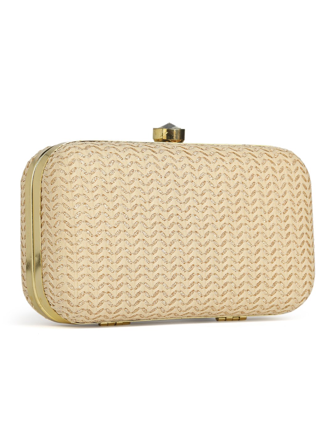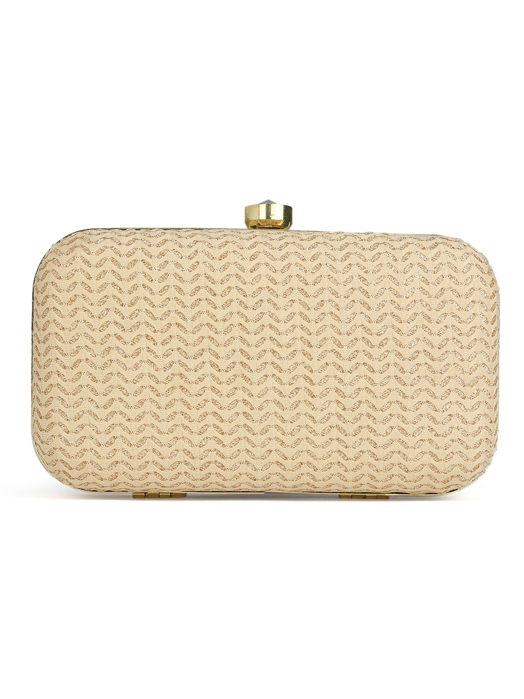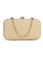 Beige & Gold Embroidered Box Clutches For Girls and womens