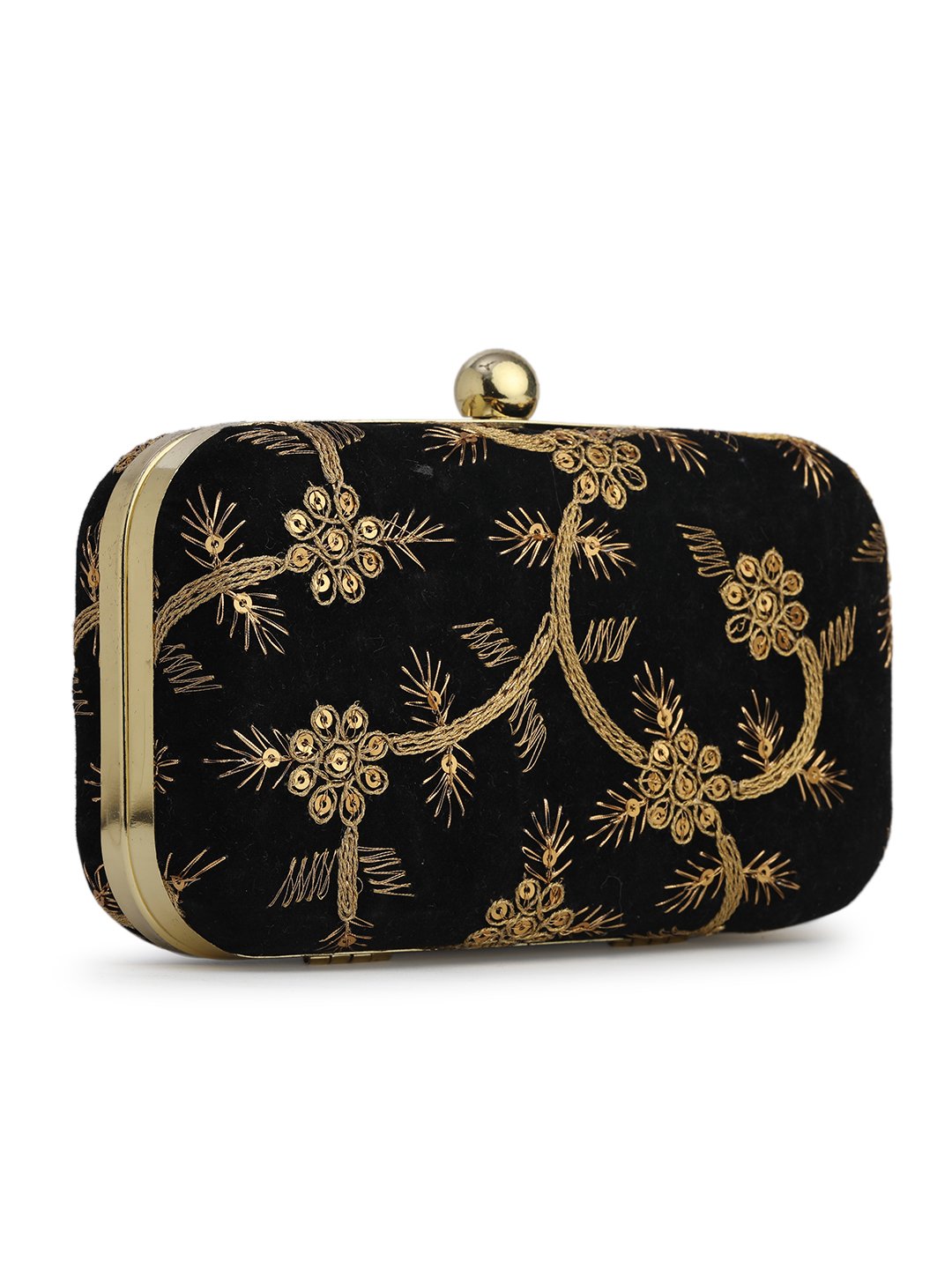 Black & Gold Embroidered Box Clutches For Girls and womens