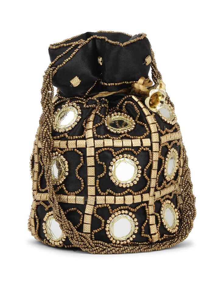Combo – Designer Embroidered Potli Bag – Purple & Black