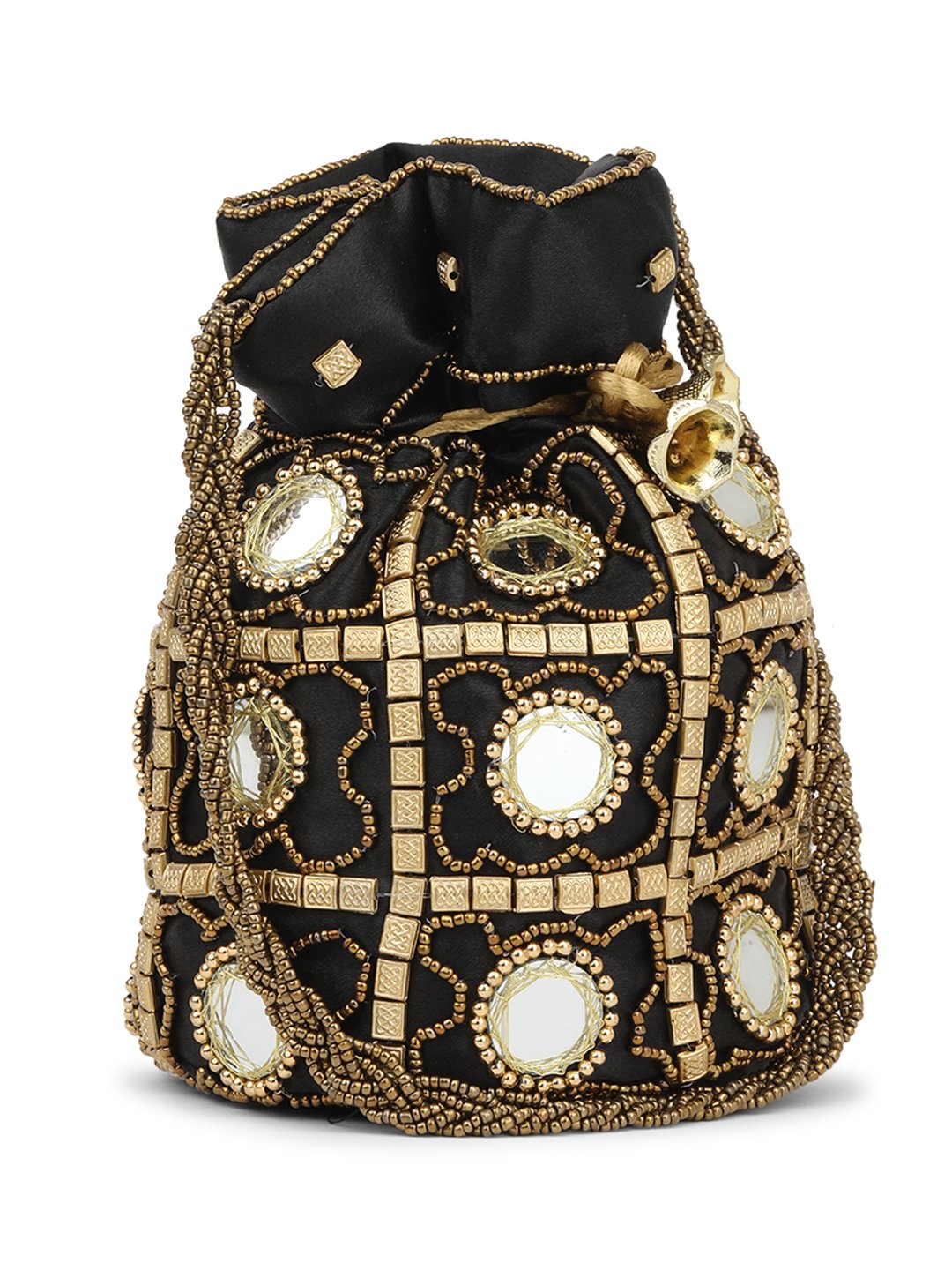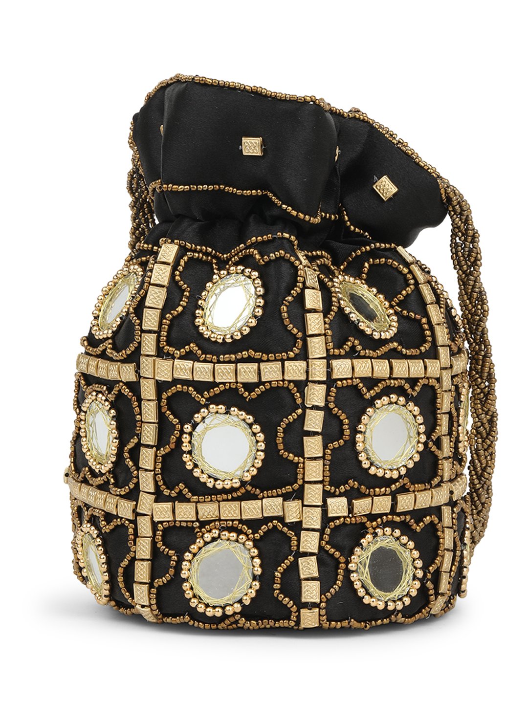This product is a combo of tow Embellished potli bags having wrist loop 1 main compartment each with drawstring closure. Size & Fit Size of each potli bag : 9 x 9 x 3 Inch (Length x Width x Depth ) Material & Care Fabric Wipe with clean, dry cloth