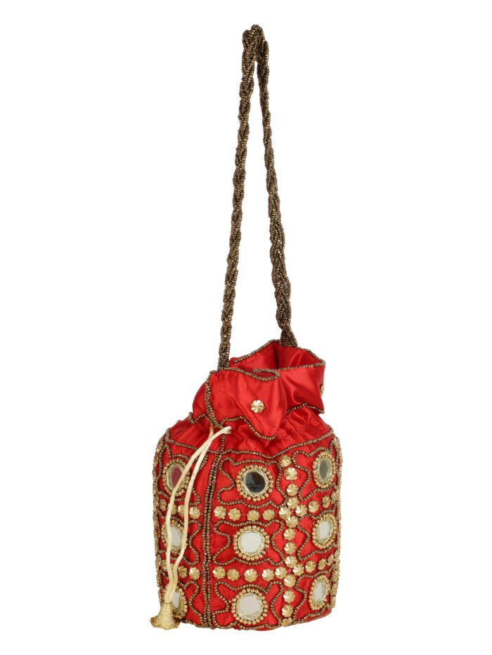 Combo – Designer Embroidered Potli Bag – Red & Beige