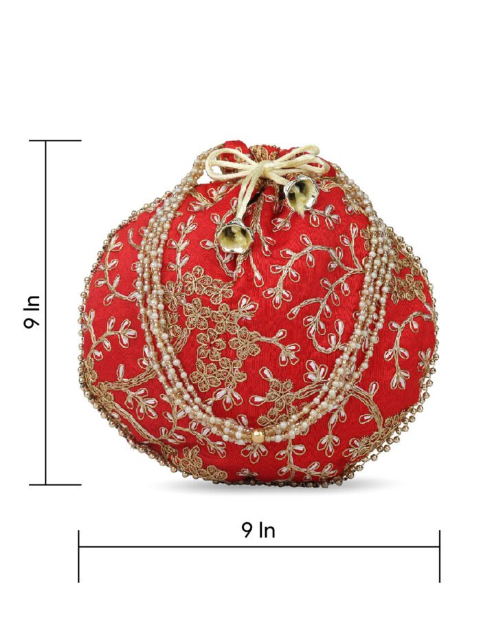 Combo - Designer Embroidered Potli Bag - Red & Beige