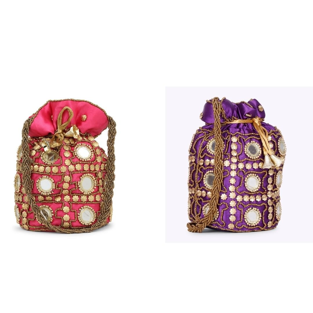 Combo – Designer Embroidered Potli Bag – Red & Purple