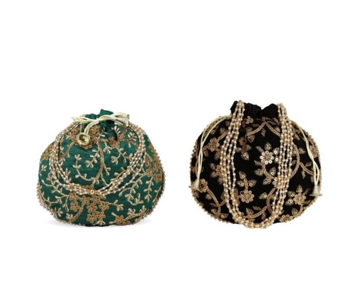 Be the first to review “Combo of Black & Green Color Designer Embroidered Potli Bag” Cancel reply