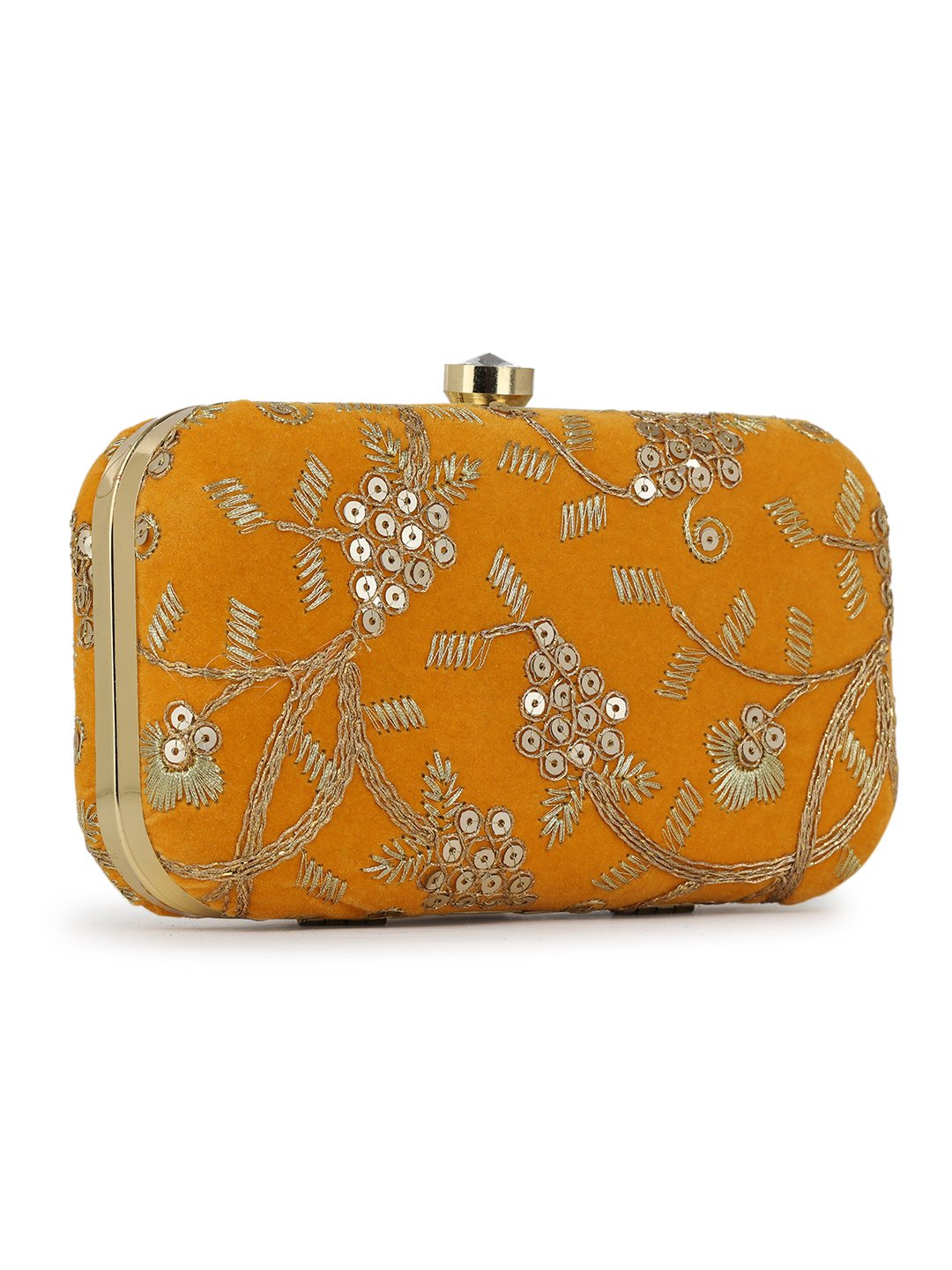 Combo Of Boho Bag And Mustard Embroidered Box Clutch For Girls and womens