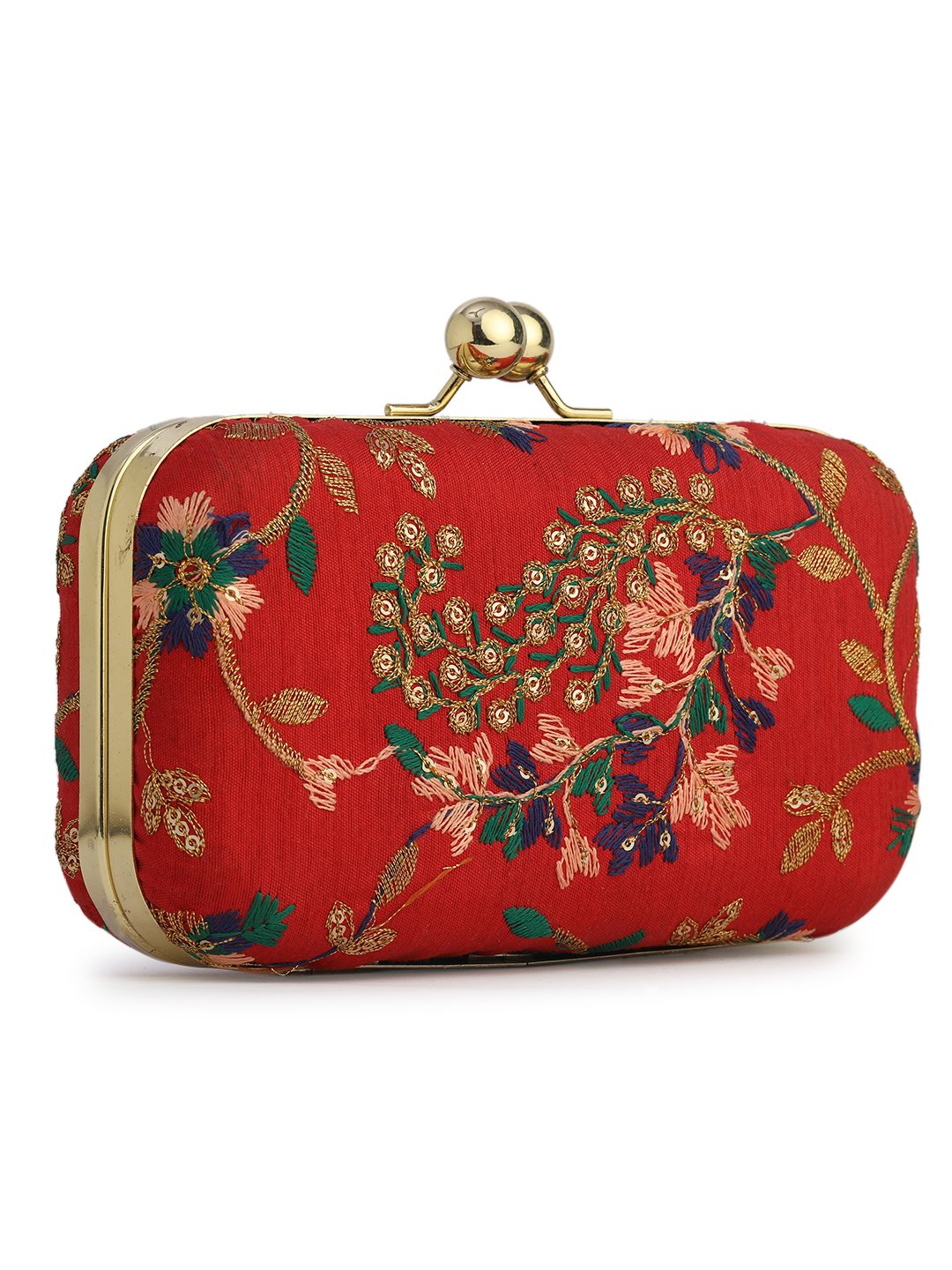 Combo Of Boho Bag And Red & Gold Embroidered Box Clutches For Girls and womens