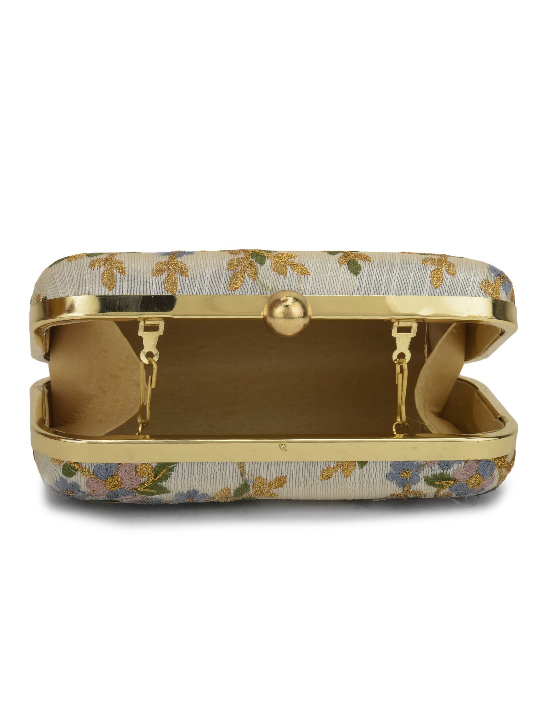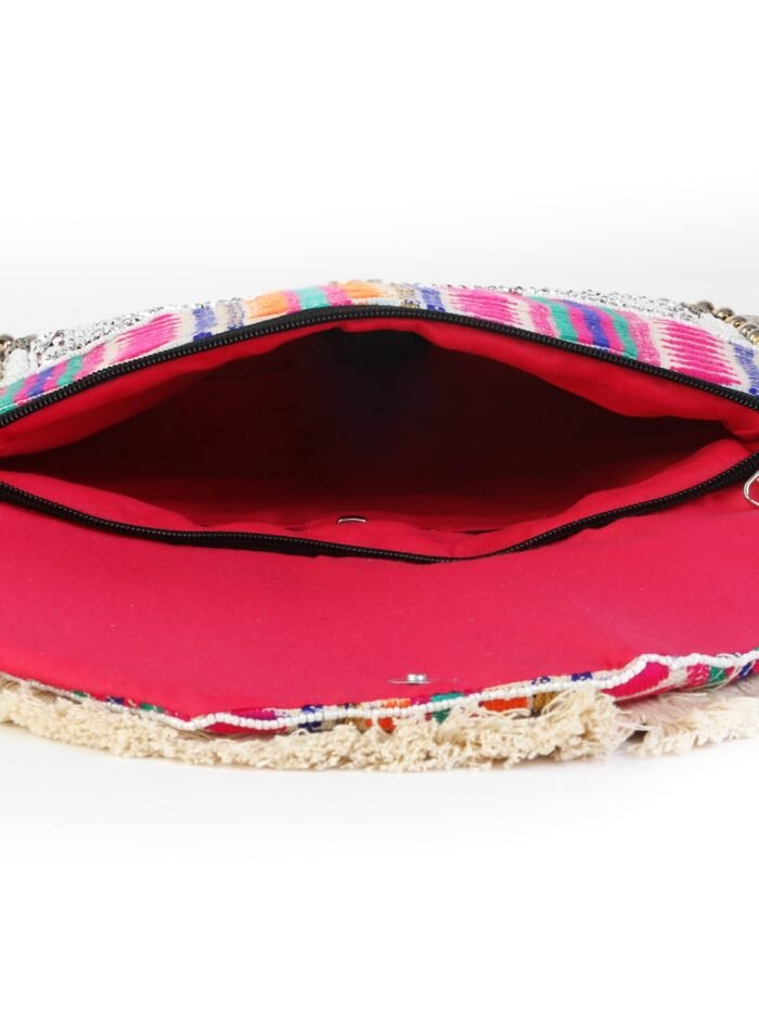 Combo Of Boho Bag And White & Gold-Toned Embroidered Party Box Clutch For Girls and Womens For Girls and womens