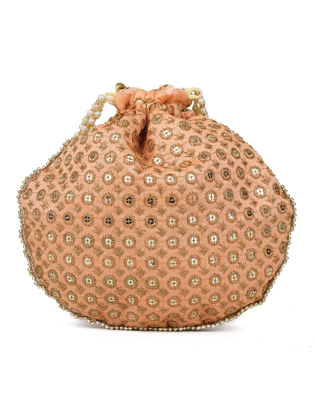 This product is a combo of tow Embellished potli bags having wrist loop 1 main compartment each with drawstring closure. Size & Fit Size of each potli bag : 9 x 9 x 3 Inch (Length x Width x Depth ) Material & Care Fabric Wipe with clean, dry cloth