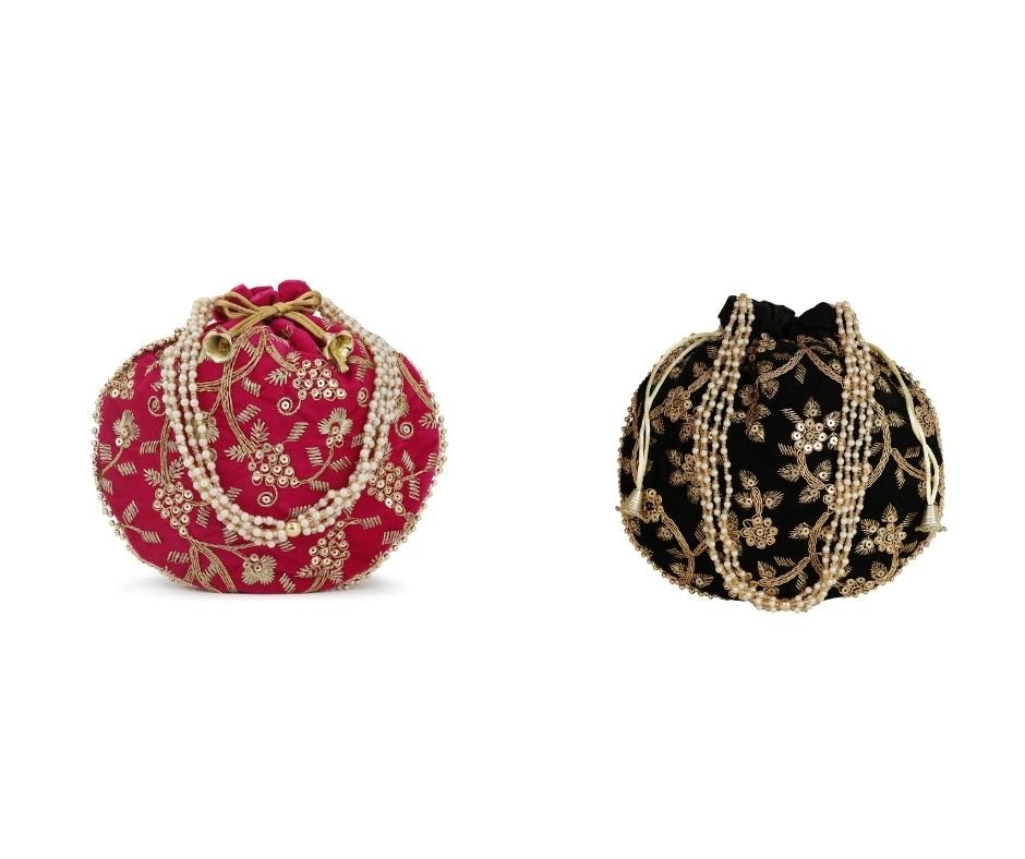 Designer Embroidered Potli Bag Combo- Pink & Black