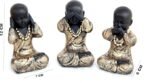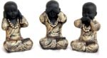 Handcrafted Set of 3 Baby Monk Decorative Showpiece – 12 cm (Polyresin, Gold, Black)
