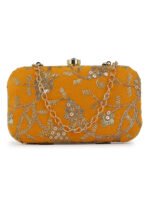 Mustard Embroidered Box Clutch For Girls and womens