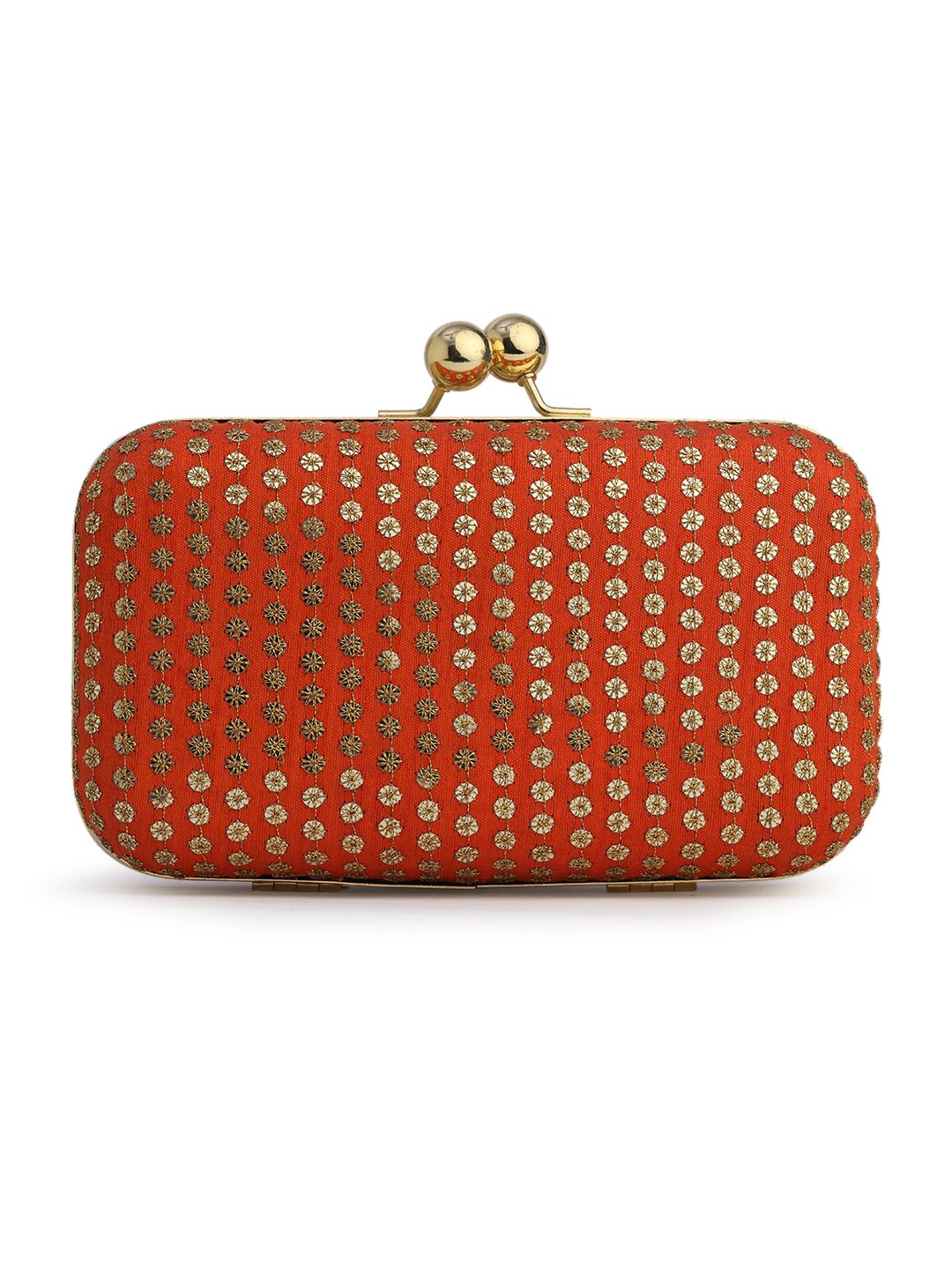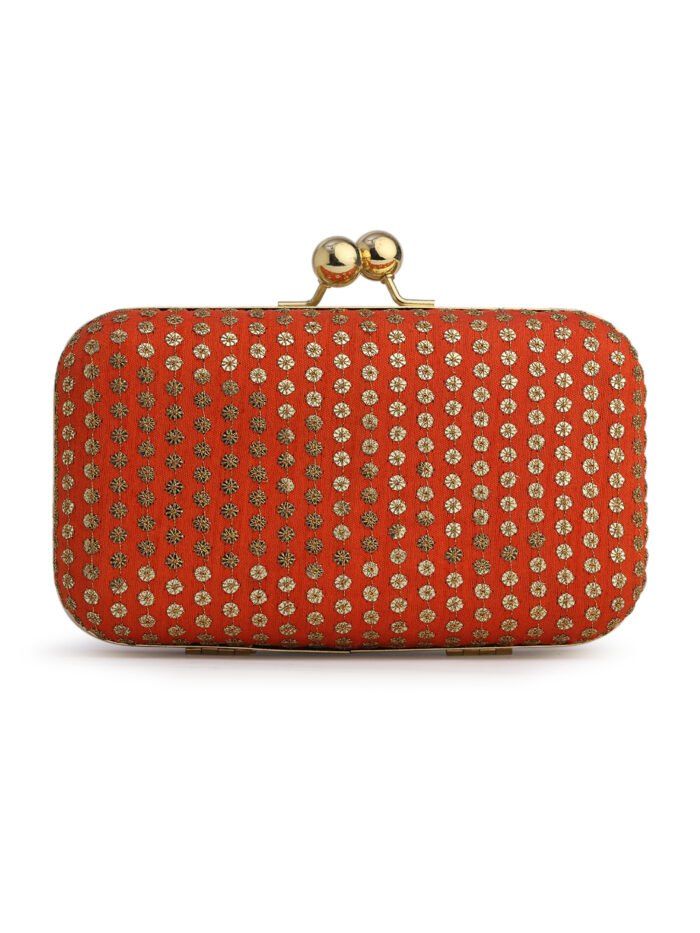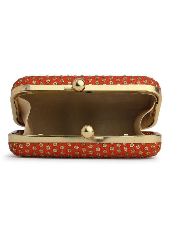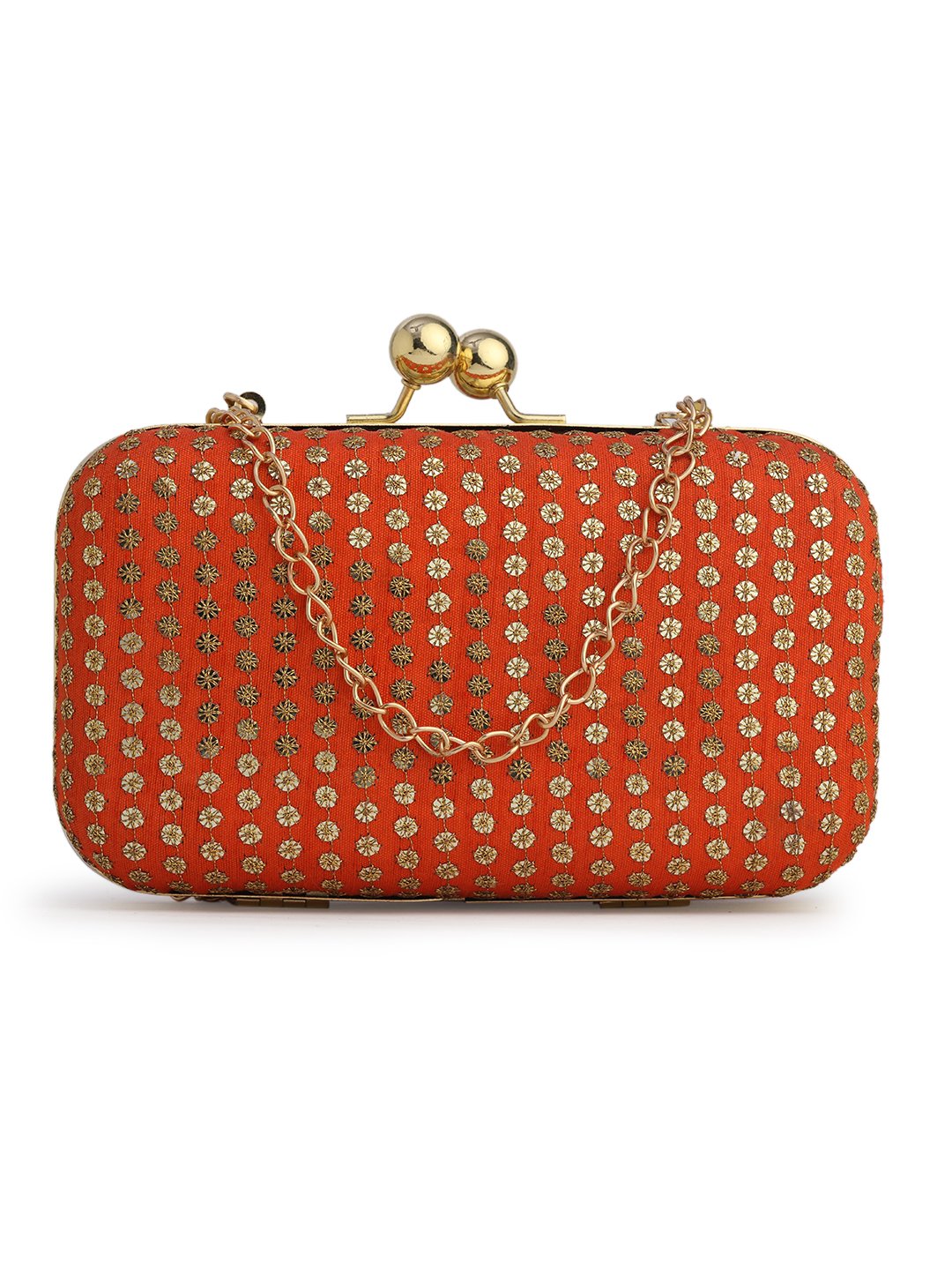 Orange & Gold Embroidered Box Clutches For Girls and womens