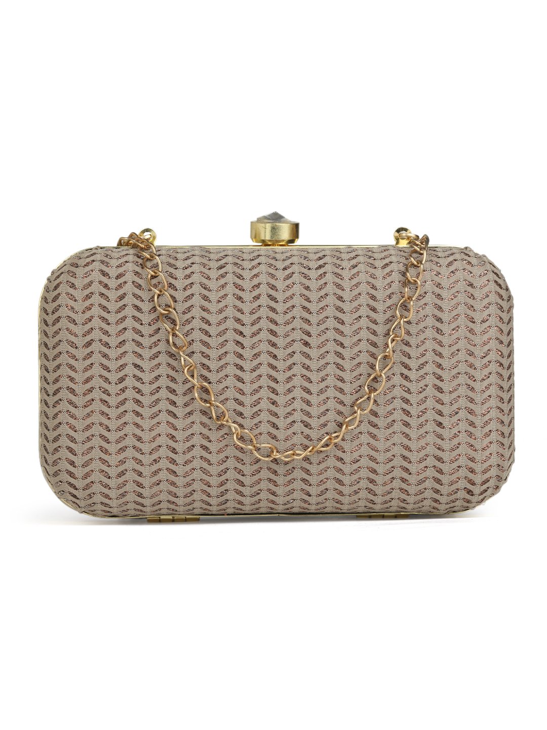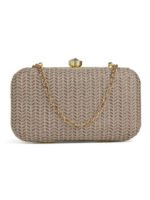 Beige & Gold Embroidered Box Clutches For Girls and womens