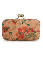 Beige & Gold Embroidered Box Clutches For Girls and womens