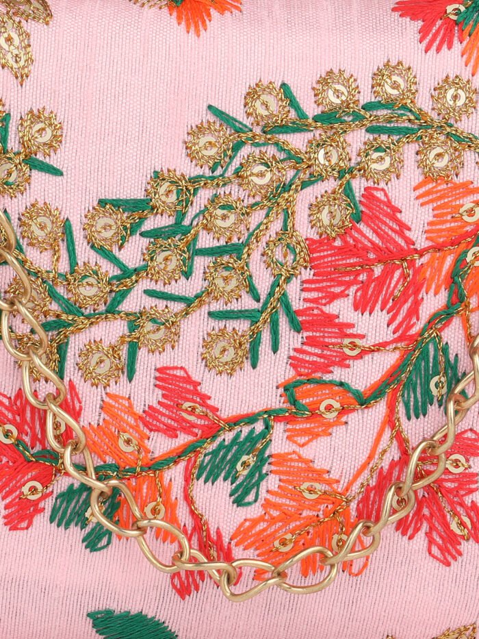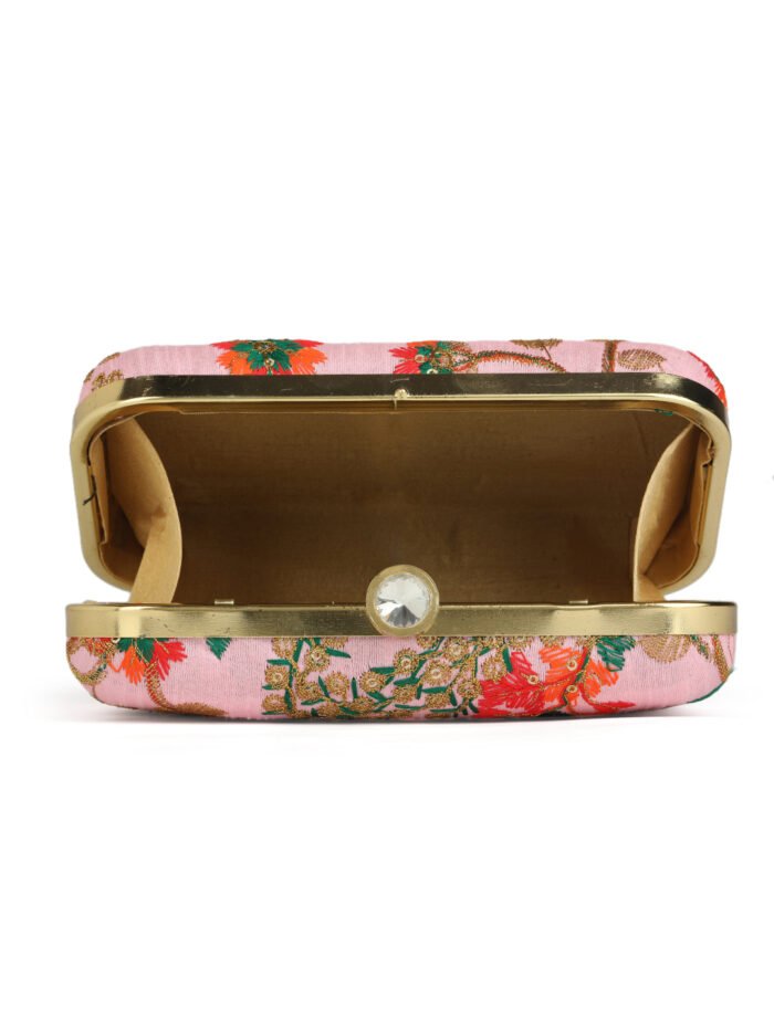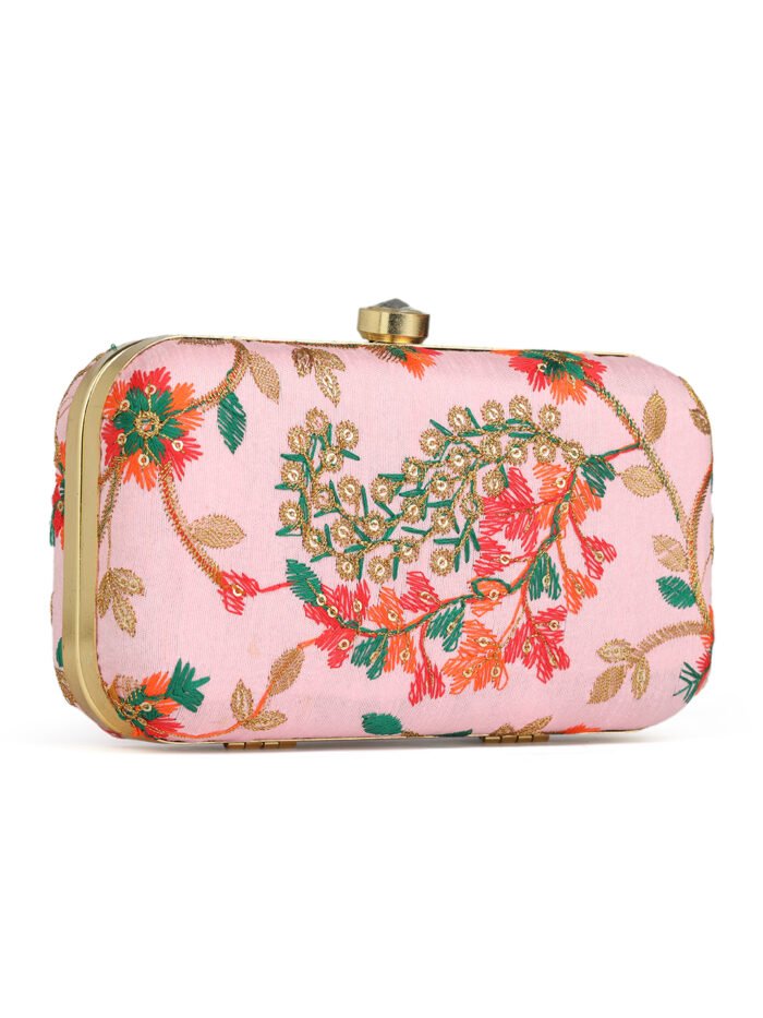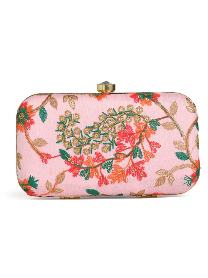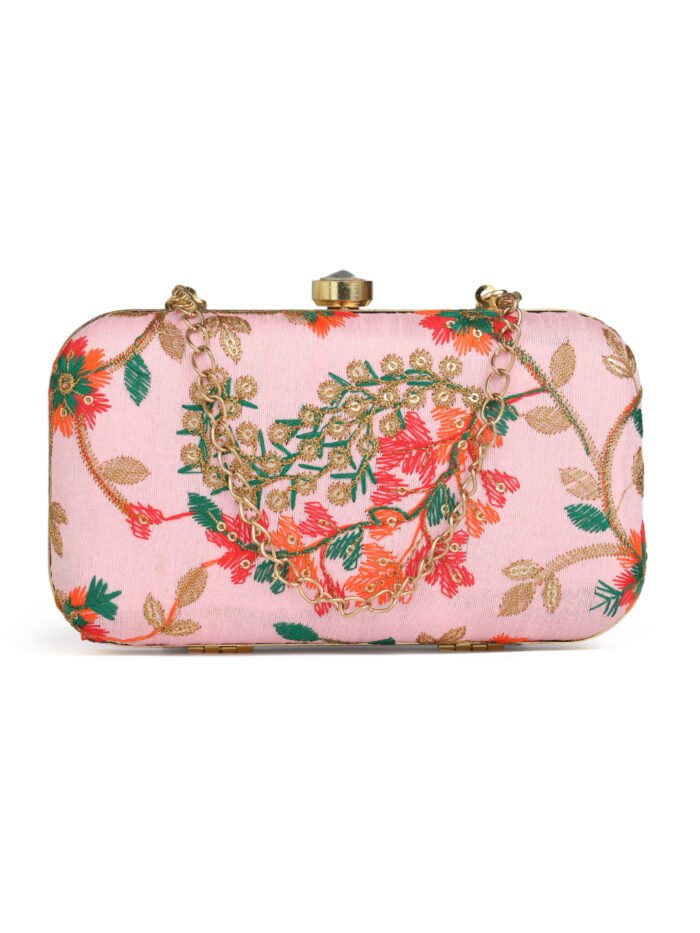 Pink Embroidered Box Clutch For Girls and womens
