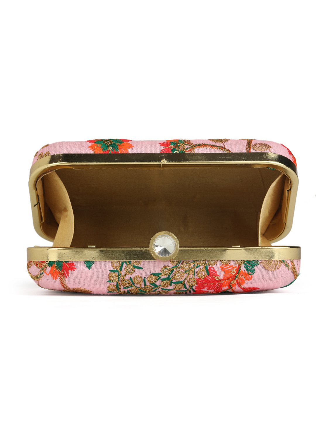 Pink & GoldEmbroidered Box Clutches For Girls and womens