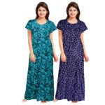 Women’s Full Length Cotton Cotton Printed Maxi Nighty Combo Pack Of 2 (Blue)