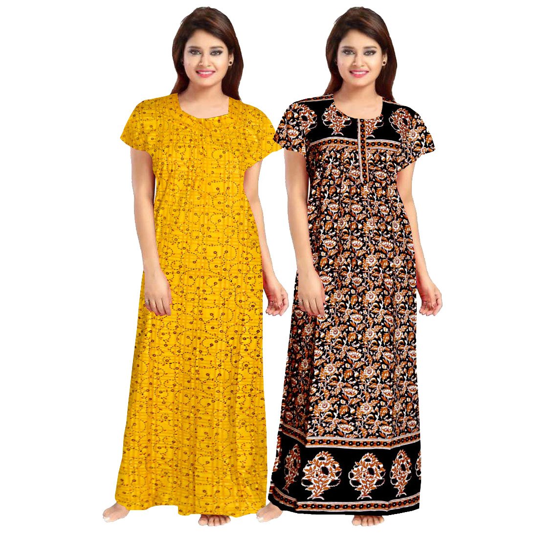 Home Nightgown Women’s Full Length Cotton Cotton Printed Maxi Nighty Combo Pack Of 2