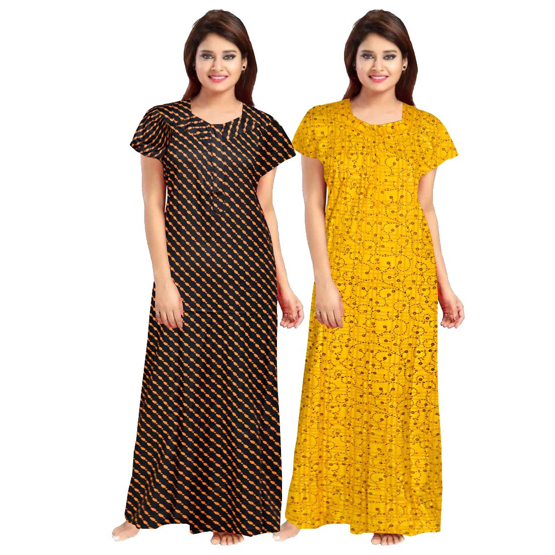 Women’s Full Length Cotton Cotton Printed Maxi Nighty Combo Pack Of 2 (Mustard)