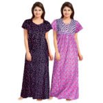 Women’s Full Length Cotton Cotton Printed Maxi Nighty Combo Pack Of 2 (Purple)