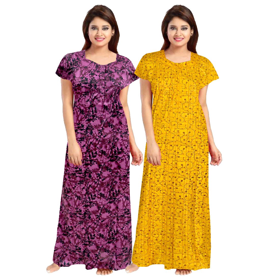 Women’s Full Length Cotton Cotton Printed Maxi Nighty Combo Pack Of 2 (Yellow)